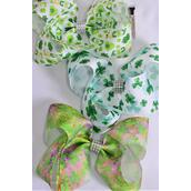 Hair Bow Jumbo Clover Shamrock Mix St Patricks Day Grosgrain Bow-tie / 12 pcs Bow = Dozen