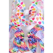 Hair Bow Jumbo Multi Hearts Valentines Grosgrain Bow-tie / 12 pcs Bow = Dozen