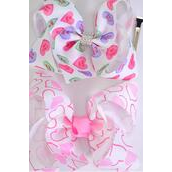 Hair Bow Jumbo Pastel Hearts Hug & Kiss Grosgrain Bow-tie / 12 pcs Bow = Dozen
