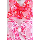 Hair Bow Jumbo Heart Pattern Mix Grosgrain Bow-tie / 12 pcs Bow = Dozen