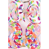 Hair Bow Jumbo Multi Hearts Grosgrain Bow-tie / 12 pcs Bow = Dozen