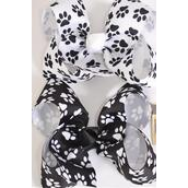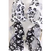 Hair Bow Jumbo Paw Print Black White Color Mix Grosgrain Bow-tie / 12 pcs Bow = Dozen