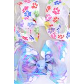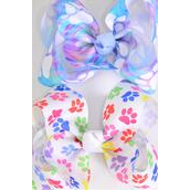 Hair Bow Jumbo Paw Print Tiedye Mix Grosgrain Bow-tie / 12 pcs Bow = Dozen