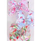 Hair Bow Jumbo Flamingo Grosgrain Bow-tie / 12 pcs Bow = Dozen