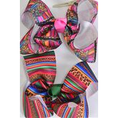 Hair Bow Jumbo Serape Leopard Cactus Mix Grosgrain Bow-tie / 12 pcs Bow = Dozen