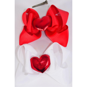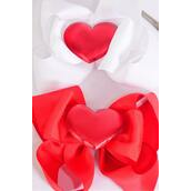 Hair Bow Jumbo Double Layered Center Large Red Metallic Puffy Heart Grosgrain Bow-tie / 12 pcs Bow = Dozen