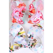 Hair Bow Jumbo Santa Workshop Reindeer Christmas Theme Grosgrain Bow-tie / 12 pcs Bow = Dozen