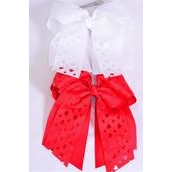 Hair Bow Extra Jumbo Long Tail Cheer Type Bow Double Layered Heart Grosgrain Bow-tie Red White Mix / 12 pcs Bow = Dozen