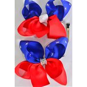 Hair Bow Jumbo Star Studded Patriotic Stars Grosgrain Bow-tie / 12 pcs Bow = Dozen