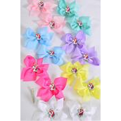 Hair Bow 24 pcs Center Unicorn Charm Pastel Grosgrain Bow-tie / 24 pcs Bow = Dozen