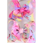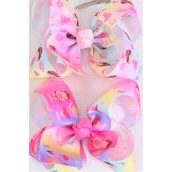 Hair Bow Jumbo Cute Ballerina Tiedye Grosgrain Bow-tie / 12 pcs Bow = Dozen