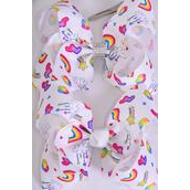 Hair Bow Jumbo Happy Rainbow Cloud Flower Hearts etc Grosgrain Bow-tie / 12 pcs Bow = Dozen