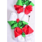Hair Bow Jumbo Bow Christmas Silver Star Studded Grosgrain Bow-tie / 12 pcs Bow = Doze