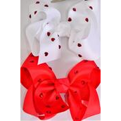 Hair Bow Jumbo Heart Studded Grosgrain Bow-tie / 12 pcs Bow = Dozen