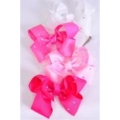 Hair Bow Jumbo Studded Iridescent Stars Pink Mix Grosgrain Bow-tie / 12 pcs Bowe = Dozen