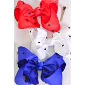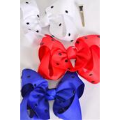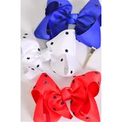 Hair Bow Jumbo Patriotic Studded Blue Stars Grosgrain Bow-tie / 12 pcs Bow = Dozen