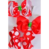 Hair Bow Jumbo Christmas Polka Dots Grosgrain Bow-tie Red / 12 pcs Bow = Dozen