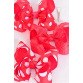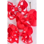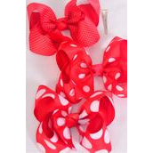Hair Bow Jumbo Red Polka dots Mix Grosgrain Bow-tie / 12 pcs Bow = Dozen