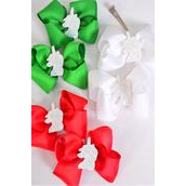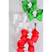 Hair Bow 24 pcs XMAS Center Unicorn Charm Grosgrain Bow-tie / 24 pcs Bow = Dozen