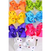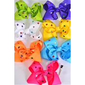 Hair Bow Jumbo Metallic Studded Hearts Grosgrain Bow-tie Citrus / 12 pcs Bow = Dozen