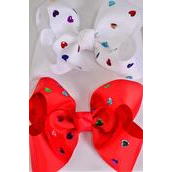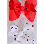 Hair Bow Jumbo Metallic Heart Studded Grosgrain Bow-tie Red White Color Mix / 12 pcs Bow = Dozen