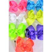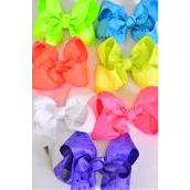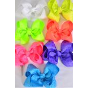 Hair Bow Jumbo Double Layered Carve Heart Caribbean Neon Grosgrain Bow-tie / 12 pcs Bow = Dozen