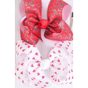 Hair Bow Jumbo Heart Pattern Mix Grosgrain Bow-tie / 12 pcs Bow Dozen