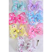Hair Bow Jumbo Cute Bunny Face Pastel Grosgrain Bow-tie / 12 pcs = Dozen