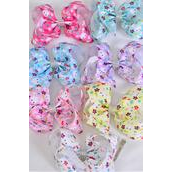 Hair Bow Jumbo Cute Bunny Face Pastel Grosgrain Bow-tie / 12 pcs Bow = Dozen