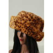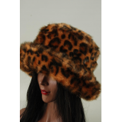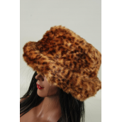 Hat Womens Leopard Plush Faux Fur Roll Up Bucket Hat / PC