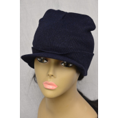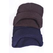 Hat Winter Knit Beanie Hat with Visor Navy Brown Mix / 12 pcs = Dozen